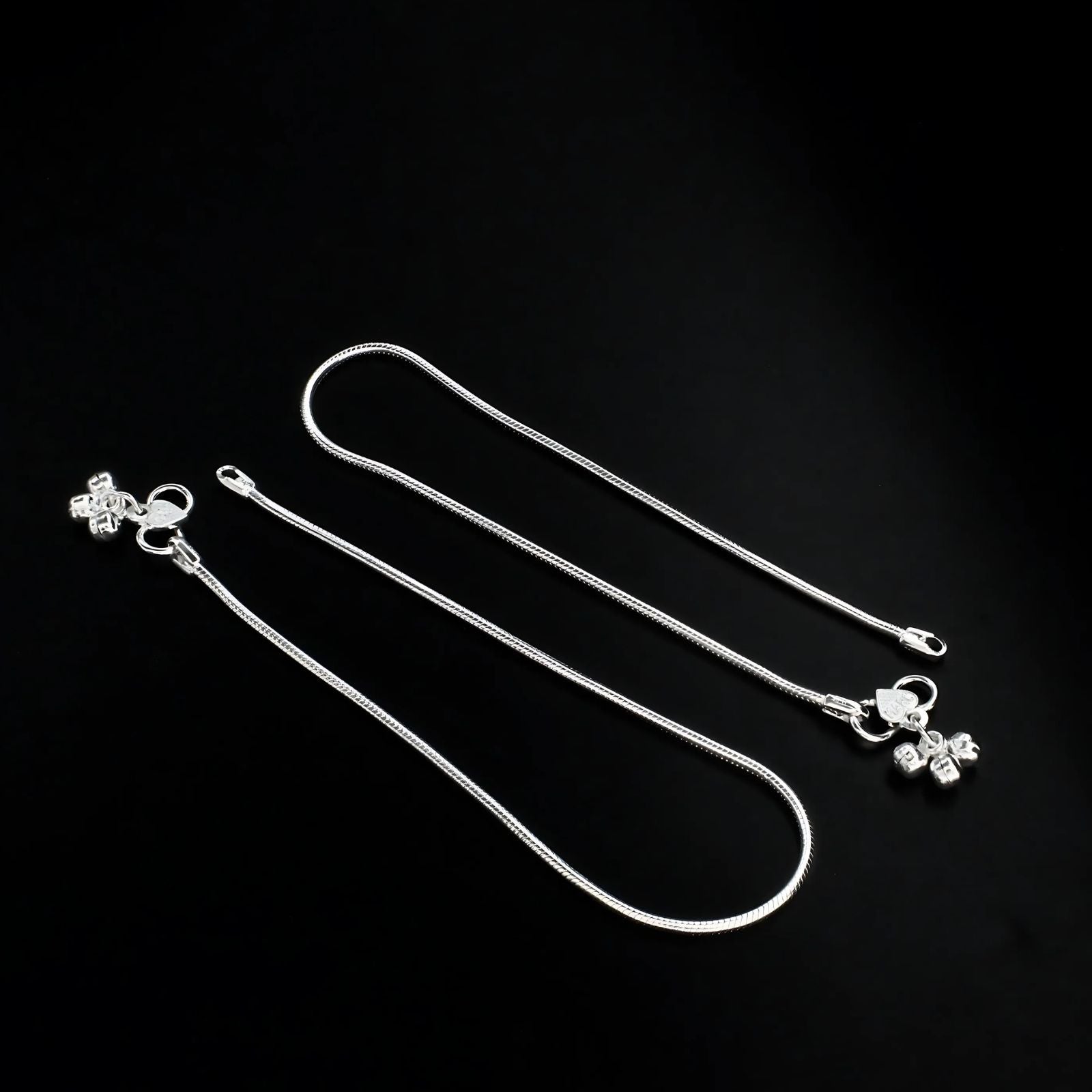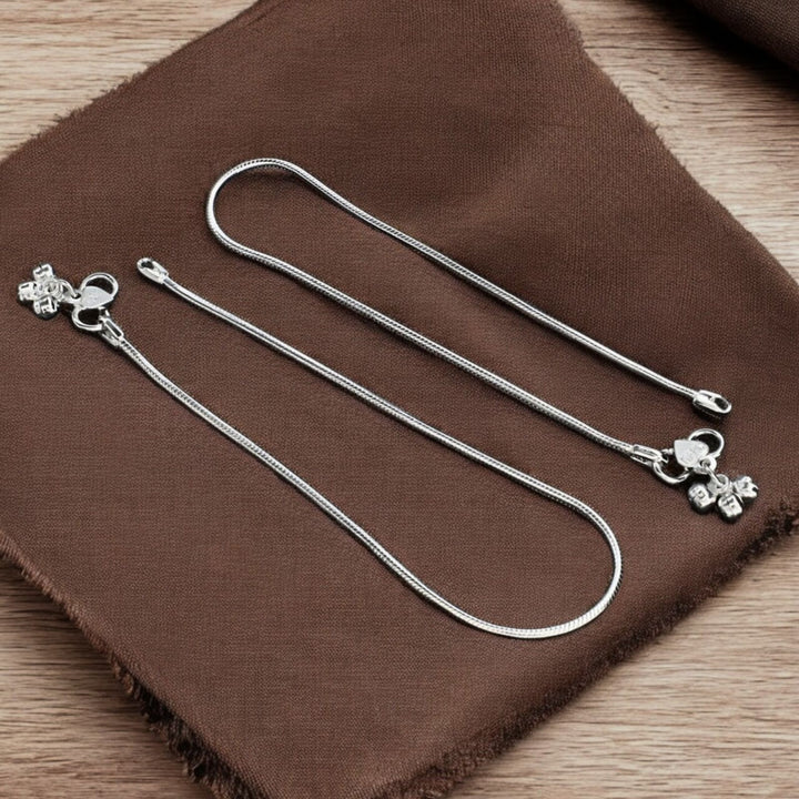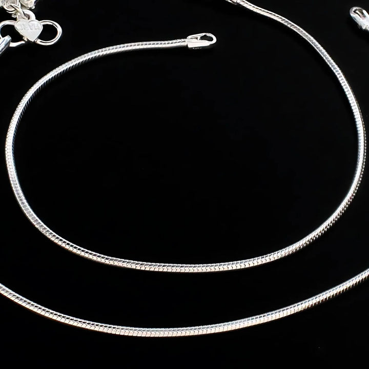 This real silver snake-style chain anklet pair, measuring 10.3 inches, combines sleek design with lasting quality. Its smooth, flexible links offer a comfortable fit while adding a modern touch to any outfit. Perfect as a thoughtful gift, this anklet pair enhances everyday style with subtle sophistication.